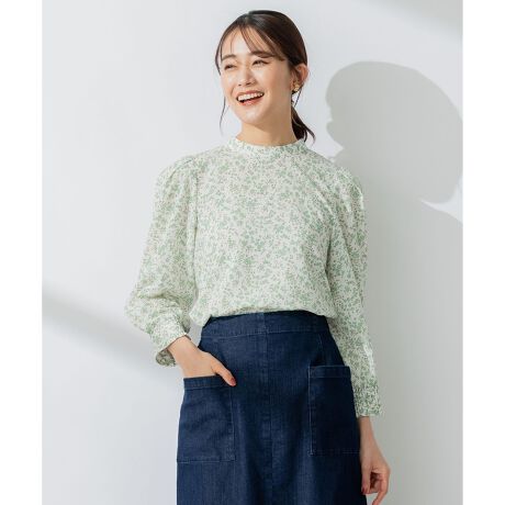 【洗える・シワになりにくい】フラワーモチーフプリントデシン ブラウス