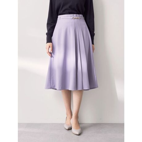 裾に向かってフレアに広がるシルエットと、サイドのプリーツデザインがレディライクなムードを漂わせます。