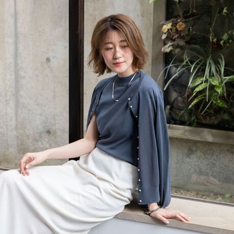 大人気のパールモチーフアイテム。シンプルなアイテムにパールボタンが加わるだけでグッとお洒落な印象に。ややシアー感のあるニットでこの季節ならではのかろやかな印象に。ほどよいふぃっ悪寒がシルエットを綺麗に見せてくれるのも嬉しいポイント。インナーはボトルネックで女性らしいシルエットに仕上がっています。セットで着るのはもちろん、それぞれ単品使いでも着回しが楽しめるアイテムです。