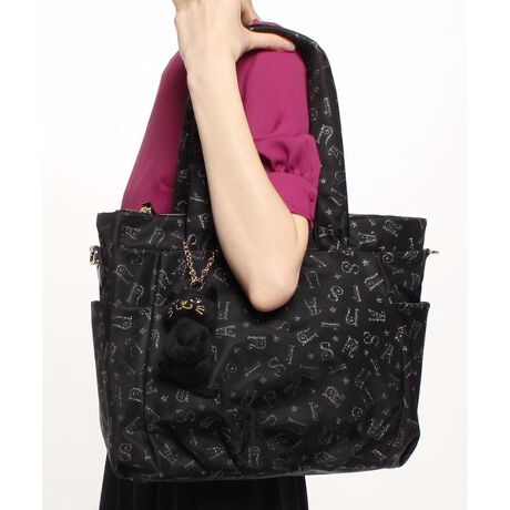 ANNASUIのロゴパターンをラメプリントした生地を使用したカジュアルなバッグシリーズ。ラメはトーントーンの上品な輝きで、コーディネートを選びません!軽くて気軽に持てるので、トラベルなどにもおススメ! ティティのチャームがとってもキュートで、お守りのようにあなたのそばに寄り添ってくれるかも♪一泊旅行やジムなどに行くときのお供にピッタリの大きめサイズ。軽いのでマザーバッグにもおススメ。ロングショルダー付きで斜め掛けもできます。 ・外ポケット数: 3・内ポケット数:3