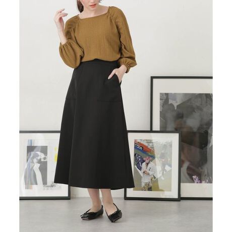 女性らしさが高まるAラインフレアシルエットのスカート。スッキリした腰周りとアウトポケットディティールが、さりげなくスタイルアップに貢献するデザイン。シンプルでどんなトップスにも合わせやすく、デイリーの着回しに重宝します。