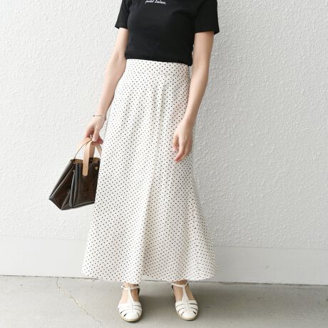 綺麗めからカジュアルまで幅広く合わせられるスカート。