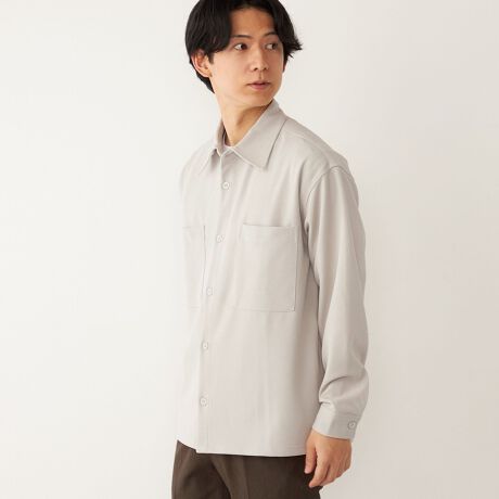 梨地ジョーゼット組織のジャージー素材を用いた、ボックスシルエット型のシャツアイテム。