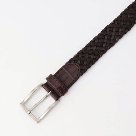 紐とボンデッドレザーをかけ合わせたメッシュベルトです。異素材の組み合わせでカジュアルな印象ですが、今季はレザ−部分に型押し加工を施し高級感を持たせました。合わせを問わず、オ−ルシ−ズンご着用いただける使い勝手の良い一本。パンツとのコ−ディネ−トはもちろん、ギフトにもオススメです。