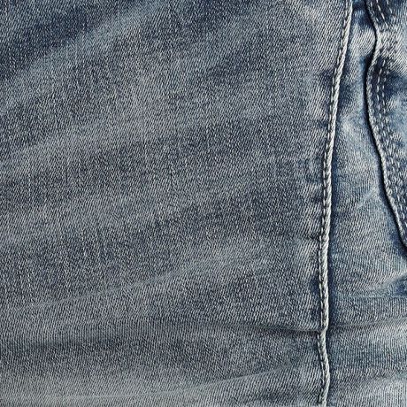 タテ糸に綿糸、ヨコ糸にポリエステルとポリウレタンの混紡糸を使用した、9ozのストレッチデニムを採用。スキニーシルエットのシンプルな5ポケットデニムです。合繊特有の微光沢と、よく伸び、キックバック性のあるストレッチ感、柔らかな風合いが特長の生地です。ヨークやベルトの地の目を変えて、ウエストが伸びる様にしています。それぞれ加工の違いで色展開をし、差別化を図っております。64パウダーブルー/67ネイビーは特殊な薬品で全体を拭いて色を落しながら独特なアタリ感とムラ感を出す加工を施し、91インディゴはメリハリのあるユーズド加工にして差別化を図っています。92ブルーは特殊なパウダーブリーチを用いて独特のムラのある雰囲気に仕上げています。どれもコーディネートの主役として活躍する一本です。