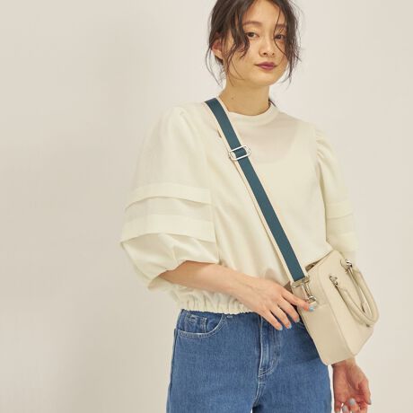 タイトなスカートとの合わせもトップスにボリュームがあるのでバランスよく着こなせます。