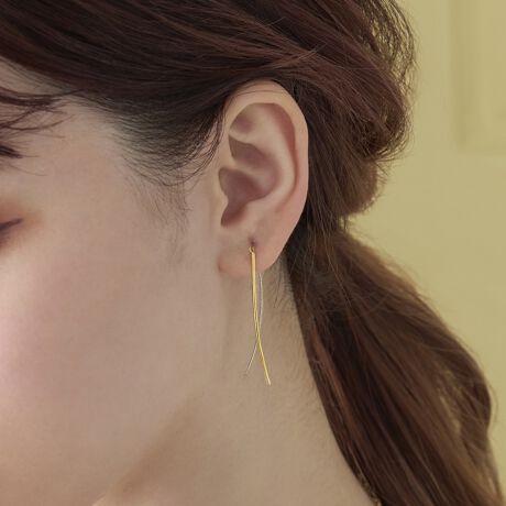 【揺れる金線が上品に存在感を放つアメリカンピアス】
