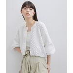 【《シルエット調整可・洗える》凹凸感のある特徴的な風合いが魅力。気分によってシルエット変化を楽しめる、女性らしさとモードな印象を併せ持ったショート丈カーディガン】