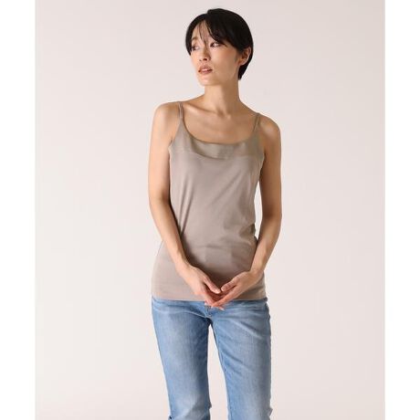 サテン切り替えキャミソール《スビン綿MIXフライス》