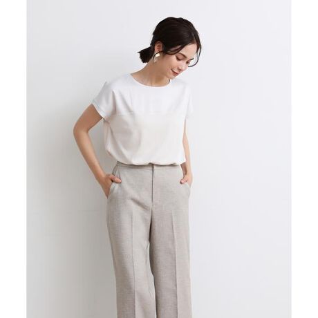 丸みのあるワイドシルエットで女性らしい印象を引き立てる、サテン切り替えのドルマンプルオーバーカットソー。二の腕やボディラインが出にくいサイズ感に拘りました。サテン地の切り替えやバックスタイルのタック、ニュアンスのあるヘムライン等のディテール使いにより、着心地の良さと表情のあるデザイン性を併せ持ったデザインTシャツに仕上げました。・水洗い可《スビンとは》宝石の綿とも言われるSUVIN(スビン)綿は、243番以上(糸の細さ)綿糸を紡績できる繊維の長さと繊度の細さが特徴です。細く長い繊維のため糸の構成本数が多くなり強度、伸度をより高いレベルにまですることができます。この糸だからこそ適応できる高密度での編み、特殊な加工により、限りなく美しく、優しく、そして強い素材になっています。■サンプル撮影商品■こちらの商品はサンプルでの撮影となっております。実際の商品とは、サイズや色味、素材、デザイン等の仕様が若干変更になる場合がございます。