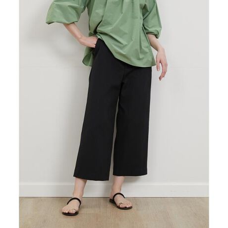程良いゆとりや身長を選ばないクロップド丈、穿き心地の良い後ろウエストのゴム仕様でストレスフリーなパンツです。リラックス感がありつつ、上質感のある素材使いで上品なクリーンさをプラスしました。スタイリングしやすい汎用性の高いデザインもポイントです。素材は凹凸による清涼感と豊かな表情のある綿麻混のポリエステルオックスを使用。白や淡色でも透けにくく、安心して着用していただけます。優れた吸水性と速乾性を持ち、きちんと感と着心地の良さを併せ持っています。・水洗い可・裏地なし・ポケットあり・ウエスト後ろ部分ゴム仕様同素材のジレ品番:7032141009同素材のテーパードパンツ品番:7032161008■サンプル撮影商品■こちらの商品はサンプルでの撮影となっております。実際の商品とは、サイズや色味、素材、デザイン等の仕様が若干変更になる場合がございます。