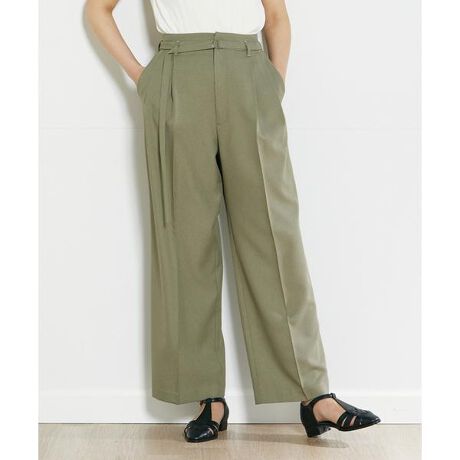 長めのベルトが付いたワイドパンツ。ナチュラルな表面感を表現したポリエステルで、日差しに強くさわやかな接触冷感・吸水速乾などの機能性を兼ね備えた素材です。同素材のダブルブレストジャケットとのカジュアルセットアップスタイルの他、ニットやブラウスを合わせたキレイめなカジュアルスタイリングもおすすめです。・裏地なし・共布ベルト付き同素材対応ジャケット品番:6531141513