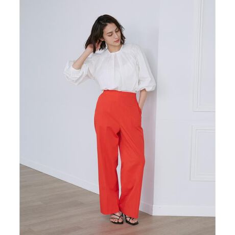 麻混のドライな素材を使用した定番ワイドパンツ。裾にかけてすとんと真っ直ぐに落ちるシルエットをハイウエストで引き締め、センタープレスとフルレングスでシャープな印象をプラスしました。後ろゴムのラクチンウエストで長時間の着用も疲れず、ご自宅でケア出来る気軽さも魅力。春夏用のデイリーパンツとして必ず持っておきたいおすすめの一本です。・裏地なし・左サイドファスナーあり・後ろウエストゴム仕様・水洗い可■サンプル撮影商品■こちらの商品はサンプルでの撮影となっております。実際の商品とは、サイズや色味、素材、デザイン等の仕様が若干変更になる場合がございます。