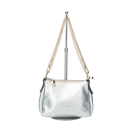 シボ感のあるメタリックレザーを使用したショルダーバッグは、チェーンストラップがスタイリッシュな印象です。