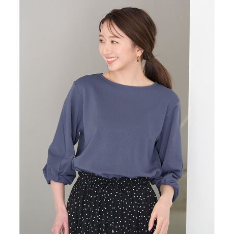 立体的なツイストスリーブがポイントのフェミニントップスデザイン・袖にボリュームとアクセントを持たせ、コーディネイトの主役にピッタリの一枚・袖のツイストデザインが気になる腕周りもカバーしてくれる優秀アイテム・適度なハリとコシがあり、シルエットもしっかりと出てくれる・インでもアウトでも決まるバランスの良い着丈・前後差のある裾がこなれ感をアップ・ボートネックですっきりとした印象に