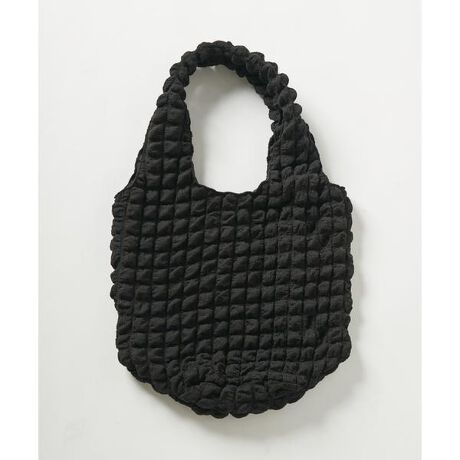 シンプルなコーディネートに持つだけでポイントになるトートバッグの登場。ワッフルのような立体感のあるシルエットが特徴のアイテムです。裏地がついているので荷物を入れてもポコポコ感はしっかりキープできます。ちょっとしたワンマイルのお出かけにもおすすめです。