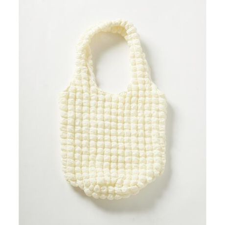シンプルなコーディネートに持つだけでポイントになるトートバッグの登場。ワッフルのような立体感のあるシルエットが特徴のアイテムです。裏地がついているので荷物を入れてもポコポコ感はしっかりキープできます。ちょっとしたワンマイルのお出かけにもおすすめです。