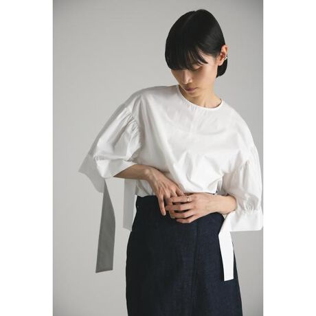 モデル身長168cm(FREEサイズ着用)動きの出る袖のロングカフデザインがモードなブラウス。抜け感のあるドロップショルダーと袖ギャザースリーブで華奢なラインに見せてくれるシルエットも魅力。センターシームデザインで間延びをなくし、着用するだけでこなれた印象に導きます。ハリ感のあるタイプライター素材を使用。バックファスナー仕様。透け感なし、ストレッチなし。【お手入れ方法】マシンウォッシュ可