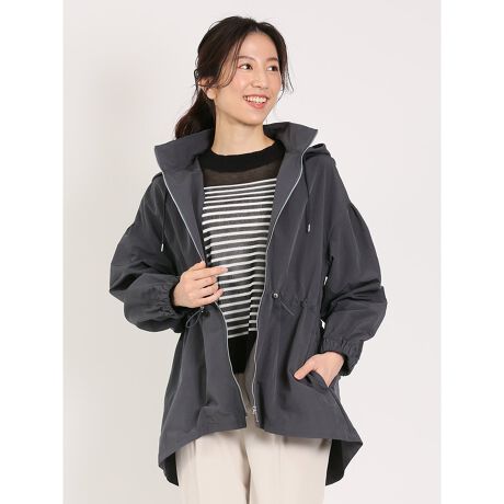 季節の変わり目の寒暖差に対応してくれるマウンテンパーカーです。ゴールドの金具使い、背ヨーク、袖口のシャーリングがポイント。フード、ウエスト部分はドロスト付きでシルエット変化も楽しめます。風の強い日や少し肌寒い時など、春先の急な冷え込みや梅雨時期の羽織ものとして大活躍します。