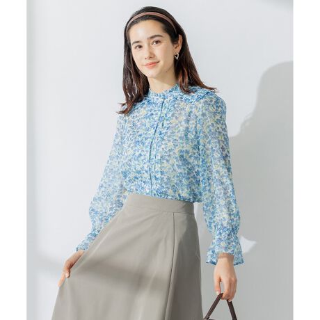 シアー×小花柄プリントで華やかなスタイリングが叶う、トレンドフリルブラウス