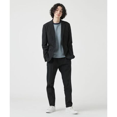 マットな質感でやや薄手のストレッチ性のあるシアサッカー素材を使用したセットアップ。