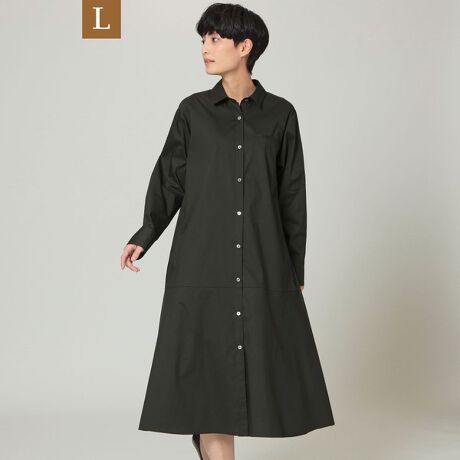 【L】【ウォッシャブル】ナチュラルハイパワーストレッチシャツワンピース