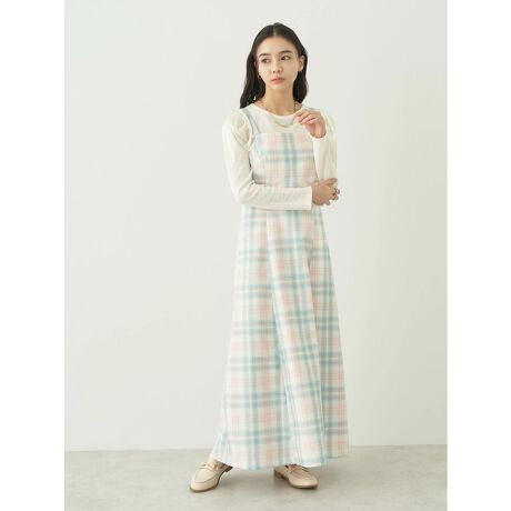 春らしいお色のチェック柄が目を惹くジャンパースカート。