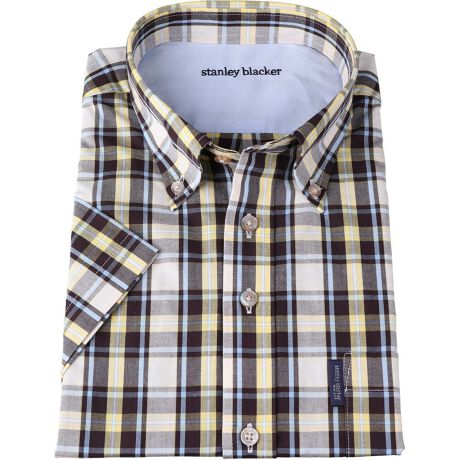 【stanley blacker】チェック柄ボタンダウン半袖ワイシャツ/ウォッシャブル