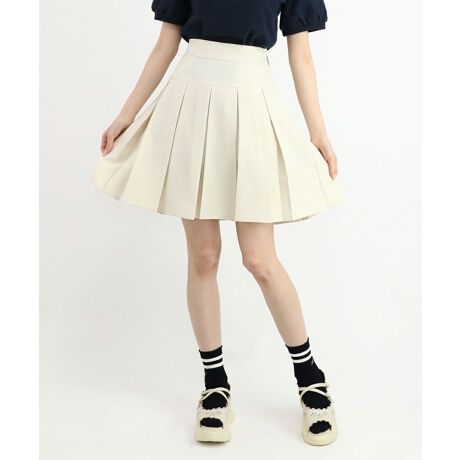 すっきりとした腰回りから裾に向かってひらっと開くプリーツシルエットが今っぽい印象に。