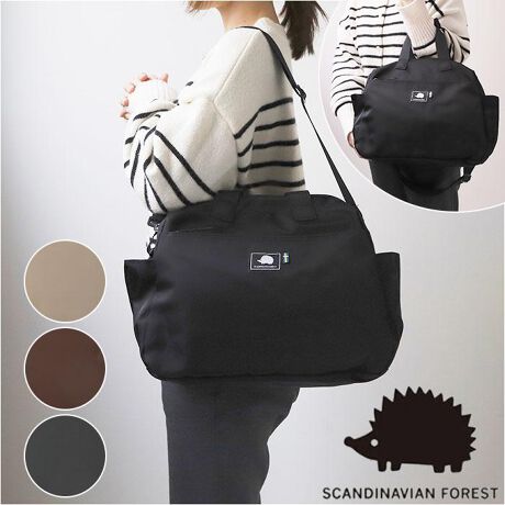 ハリネズミのモチーフが可愛らしいワンポイント♪大人気「SCANDINAVIAN FOREST」から、ボストンバッグ(Lサイズ)が新登場。手持ちのボストンバッグとしてはもちろん、取り外しのできるショルダーベルトで肩掛けにもできる2WAYタイプのボストンバッグ。バッグの開口部は、左右から開きやすいダブルファスナー仕様。小物がサッと取り出しやすく、外出先でのプライバシー面でも安心なつくり。メインルームはA4サイズに対応。1泊2日程度のトラベル用の荷物が程よく収まる、使い勝手のいいサイズに設計。メインルーム内側にはオープンポケット×2ヶ所、ファスナーポケット×1ヶ所をしっかりと配置し、コインケースやコスメなど小物類の仕分けもすっきりと。バッグ前面のファスナーポケット、背面のマグネットボタン式ポケットは、スマホやパスケースのような取り出し頻度の高いアイテムの収納にオススメ。外側両サイドには、500mlペットボトルや折りたたみ傘の持ち歩きに便利なオープンポケットも2つ設け、収納場所のカスタマイズも自在!光沢感のある表生地は、汚れや水滴を玉のように弾くはっ水ナイロン仕様。ベーシックカラーからくすみ感のあるアースカラーまで、ファッションに合わせやすいカラーラインナップ。大き過ぎず小さ過ぎない、普段使いのしやすいサイズ感と収納力で、通勤通学用やタウンユースにも最適。フィットネスジム用のボストンにもオススメ。・「SCANDINAVIAN FOREST」(スカンジナビアン・フォレスト)は、大人気「MOZ」の姉妹ブランドとしても有名な、スウェーデン発の北欧雑貨ブランド。