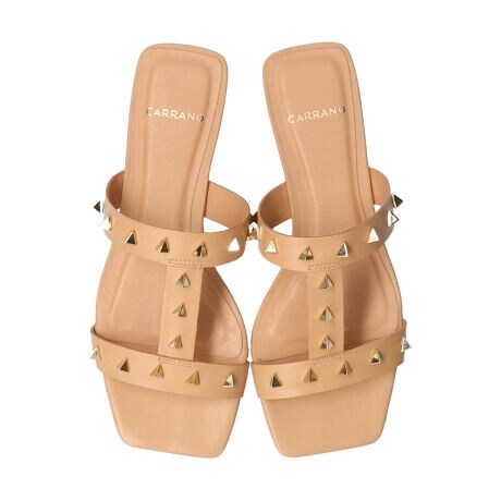 CARRANO◆0.7cmヒール◆スクエアトゥスタッズフラットサンダル