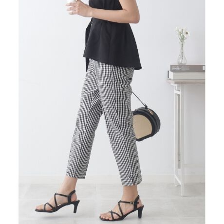 ・裾の立体感のある共地リボンがポイントのクロップド丈パンツ。
