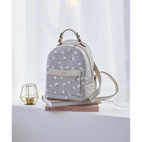 ◇& chouette(アンドシュエット)のデイジーモチーフリュック春の訪れを感じさせてくれるデイジーモチーフをあしらったシリーズです♡オリジナルのデイジーデザインには、さりげなく茎の部分に& chouetteのロゴを配しており、シンプルな花柄に仕上げました♪ハンドバッグ・ショルダーバッグ・リュック・財布・チャームを、ニュアンスカラーのグレー、オフホワイト、ラベンダー、ネイビーの4色で展開しております!▼機能性・フロントにあおりポケットが1カ所あり、パスケースなどの頻繁に取り出す物の収納に便利です☆・内側にもオープンポケット1カ所付けており、小さな荷物の整頓におすすめです。・ファスナートップを付けていただける金具がフロントについているので、カスタマイズしてお楽しみいただけます♪▼スタイル・甘さを抑えたフラワーデザインなので、通年お使いいただけます。・高級感のあるゴールドの金具を使用しており、大人かわいい印象でお使いいただけます♪「平和」「希望」を花言葉に持つデイジーモチーフがお客様に幸せを届けてくれますように…♡