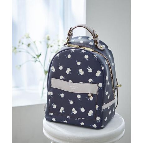 ◇& chouette(アンドシュエット)のデイジーモチーフリュック春の訪れを感じさせてくれるデイジーモチーフをあしらったシリーズです♡オリジナルのデイジーデザインには、さりげなく茎の部分に& chouetteのロゴを配しており、シンプルな花柄に仕上げました♪ハンドバッグ・ショルダーバッグ・リュック・財布・チャームを、ニュアンスカラーのグレー、オフホワイト、ラベンダー、ネイビーの4色で展開しております!▼機能性・フロントにあおりポケットが1カ所あり、パスケースなどの頻繁に取り出す物の収納に便利です☆・内側にもオープンポケット1カ所付けており、小さな荷物の整頓におすすめです。・ファスナートップを付けていただける金具がフロントについているので、カスタマイズしてお楽しみいただけます♪▼スタイル・甘さを抑えたフラワーデザインなので、通年お使いいただけます。・高級感のあるゴールドの金具を使用しており、大人かわいい印象でお使いいただけます♪「平和」「希望」を花言葉に持つデイジーモチーフがお客様に幸せを届けてくれますように…♡