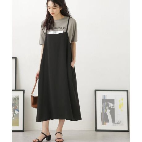 ボリューム感のあるフレアシルエットが特徴のキャミワンピース。女性らしさを加速する華奢なストラップと、裾にかけて広がる上品なフレアシルエットが印象的。タンクトップやTシャツとレイヤードしたり、上からカーディガンを合わせたり、幅広い着こなしを楽しめる逸品です。