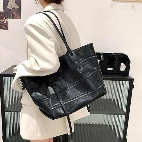 ・型押しの落ち着いた質感で、大人っぽくコーディネートに馴染むデザインで合わせやすいバッグです。