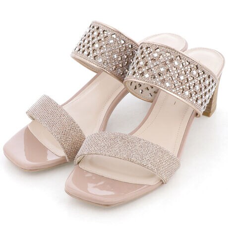 レーザーカットシャイニーミュールサンダル