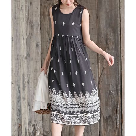 エスニックな風合いのプリントがシーズンムードを盛り上げてくれるワンピース。