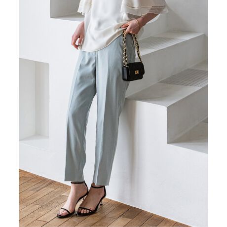 太ももやヒップにはややゆとりを持たせ、裾にかけて細身になったテーパードシルエット。