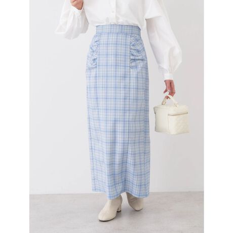 くしゅっとしたギャザーが愛らしい表情を演出するナロースカート。