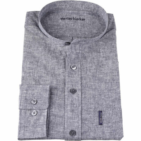 【stanley blacker】リネン混バンドカラー長袖シャツ/ネイビー/ウォッシャブル