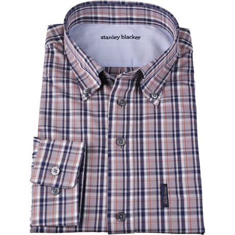 【stanley blacker】チェック柄ボタンダウン長袖シャツ/グレー/ウォッシャブル