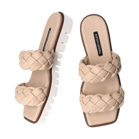 ふっくらとした編み込みダブルベルトのスクエアトウ厚底サンダルが「パラディクルール」から登場しました。