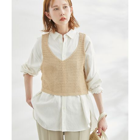 ・春先はシャツやブラウス、ワンピースに、夏はTシャツやタンクトップなどに重ねて。