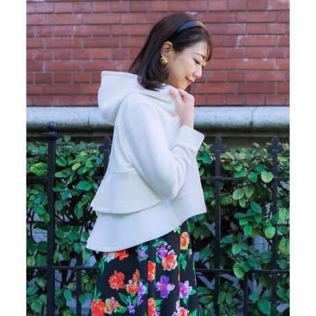 大人に似合うフェミニンパーカーは立体的なティアードフリルが可愛いバックシャンデザイン。フロントは短め丈ですっきり、後ろ裾にかけて徐々に着丈を長くしたフレアシルエットが特徴的で、見る角度によって異なる印象を演出します。ふんわりと柔らかく膨らみのあるダンボール素材はオールシーズンでの着用が可能。羽織りとしてもジップを上げてプルオーバーとしても使えるから、持っているだけで着こなしの幅が一気に広がります。スカートやワンピースをカジュアダウンさせたり、パンツを合わせた足長スタイルアップコーデもおすすめです。・水洗い可