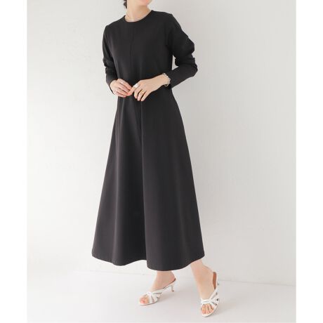 布帛見えするジャージー素材でお作りした、シンプルなフィットアンドフレアのワンピース。