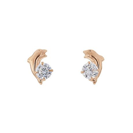 K10 ピンクゴールド キュービックジルコニア イルカ ピアス