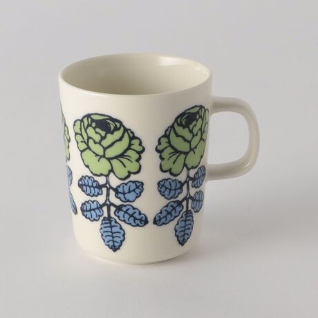 デザイナーMaija Isolaが手がけた、「ウェディングローズ」を意味するVihkiruusu(ヴィヒキルース)柄のマグカップ。