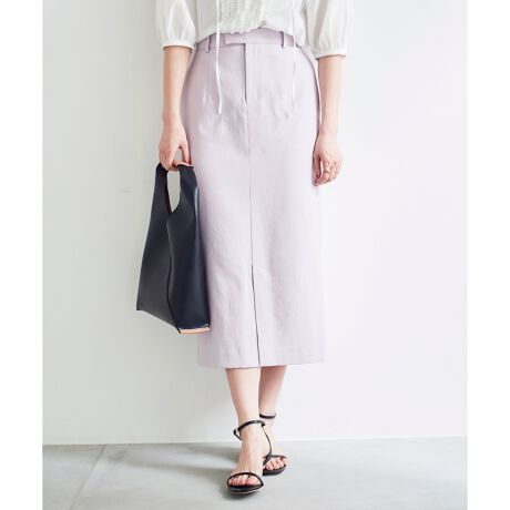 麻をブレンドしたドライタッチな質感が爽やかな雰囲気のタイトスカート。
