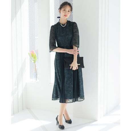 花柄レースとシフォンプリーツの切り替えが女性らしく可愛いワンピースです。